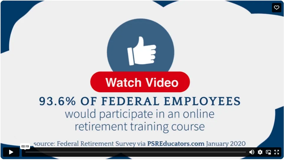 Public Sector Retirement Educators, LLC (PSRE) (www.PSREducators.com), is a government contractor DUNS:080670431, CAGE:7ZEB0, Unique Entity ID: JBDWEDVYLQJ1, and provides education and training on federal retirement benefits to federal agencies, unions, organizations, and individuals. PSRE is not affiliated, endorsed, or sponsored by any government agency. By requesting information or providing your contact information on the attached form, you authorize PSRE to share any information you provide with professional(s) of PSRE’s selection (“Affiliates”), and you are expressly requesting a phone call, email, or text message (Standard data rates may apply). Text STOP to opt-out), from PSRE and these Affiliates. Affiliates are licensed financial professionals who have attested to providing interested federal employees a complimentary, no-obligation, Benefits Review. Should you request an appointment with the Affiliate to discuss financial products, you further acknowledge any products offered are independent of and ancillary to the services provided by PSRE. PSRE is not a broker-dealer, investment advisory firm, insurance company, or agency and does not provide investment or insurance-related advice or recommendations. By requesting a Benefits Review, you further acknowledge your acceptance of PSRE’s Terms of Service and Privacy Policy (www.psreducators.com/privacy-policy/). To use this form or any of the services performed by PSRE or Affiliates, you agree to hold PSRE and its employees and executives harmless for any action taken or not taken by you as a result of your interpretation of your Benefits Review or your interaction with Affiliates.